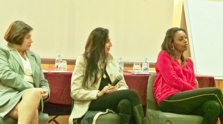 De gauche à droite sur la photo : Loula Zaklama, Zineb Elmazouni, Samira Ibrahim – 2ème Forum Mondial des Droits de l’Homme – Marrakech 2014