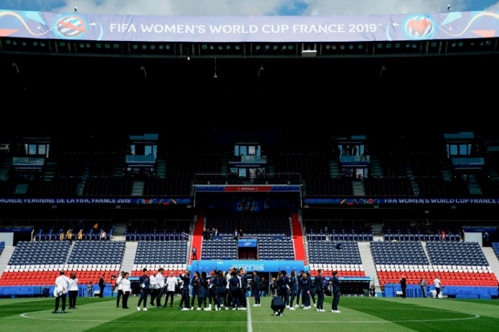 Les Bleues de Corinne Diacre au Parc des Princes, à la veille de leur match d’ouverture du Mondial face à la Corée du Sud, le 6 juin 2019. AFP / Lionel BONAVENTURE