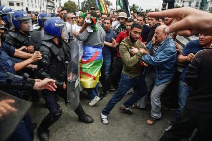 Des forces de police font face à des manfiestants à Alger le 24 mai 2019 – AFP/Archives / RYAD KRAMDI