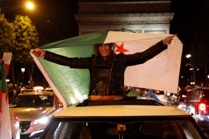 Des supporters de l’équipe de foot d’Algérie sur les Champs Elysées, le 14 juillet 2019 à Paris – AFP / Zakaria ABDELKAFI