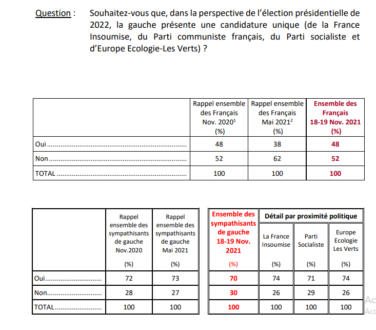 Selon l’IFOP et de nombreux instituts, les sympathisants de gauche « souhaitaient une candidature unique de la gauche » à 70 %, et ce pour trois sondages s’étalant entre novembre 2020 et novembre 2021. Sur les 7 Français sur 10 concernés, seulement 4 considéraient qu’une telle alliance pourrait se concrétiser. Pis encore, tous les candidats étaient vus par l’électorat de gauche comme de mauvais représentants. Ces doubles craintes semblent bien se réaliser…