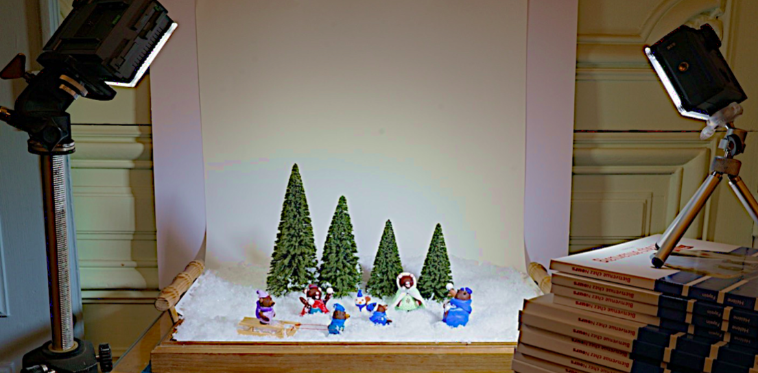 Tout d’abord, je créé les histoires, pour lesquelles j’écris les textes, que j’illustre avec des photos issues de l’univers que j’ai créé de toutes pièces : personnages en pâte à modeler et décors faits à partir d’éléments achetés ou conçus de toutes pièces par mes soins.