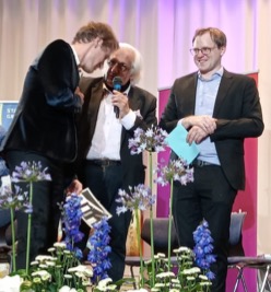 Daniel Salvatore Schiffer remet le prix de la presse au pianiste russe Sergey Belyavsky.