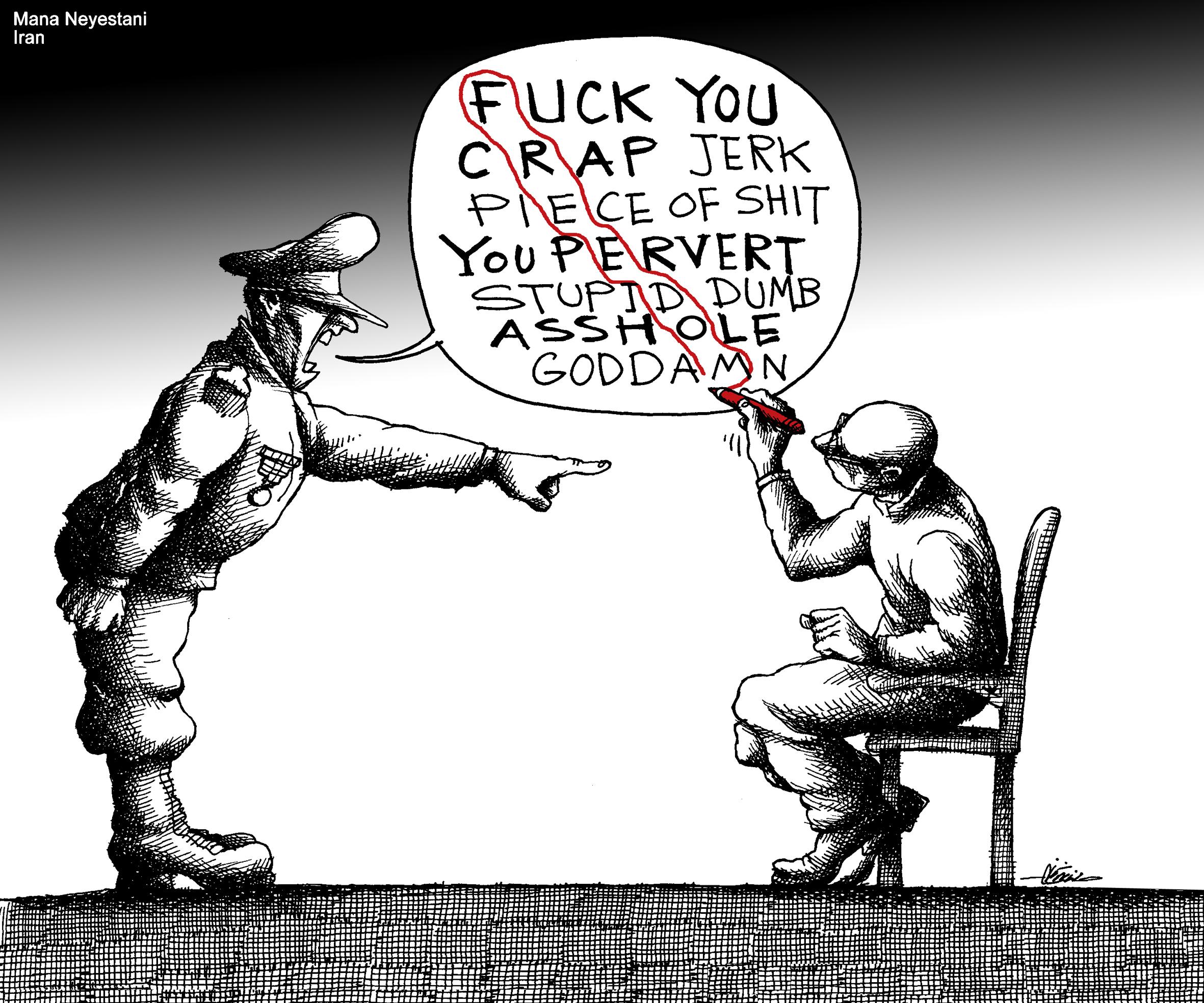 Selon moi, les lignes rouges en Iran ne sont pas stables ni claires, elles peuvent changer d’un jour à l’autre. Tu ne franchis pas la ligne rouge mais c’est la ligne rouge qui te franchie. En tant que caricaturiste, je ne dois rien mentionner directement, tout est dangereux, c’est comme marcher sur un fil.