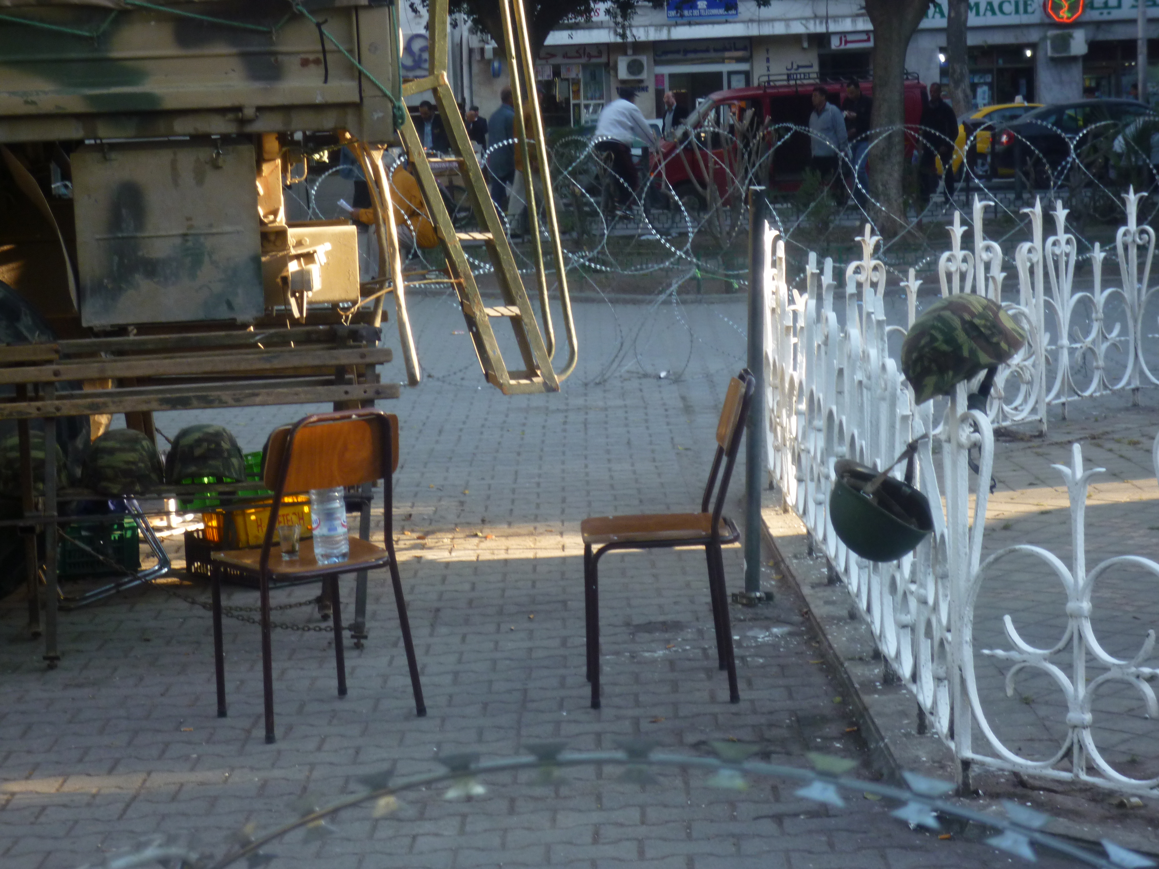 L’armée – et quelques chars – ont remplacé la police sur les places principales de Tunis. Mais avec la fleur au fusil plus qu’en brandissant la menace des bâtons comme les maniaient les policiers.