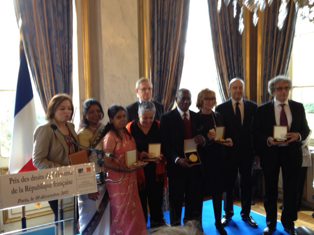 Samedi 10 décembre, Alain Juppé, ministre des affaires étrangères et européennes, à remis le prix des Droits de l’Homme de la République française à des organisations qui luttent contre les violences faites aux femmes et, deuxième thème de l’année 2011, défendent les droits à l’orientation sexuelle et l’identité de genre.