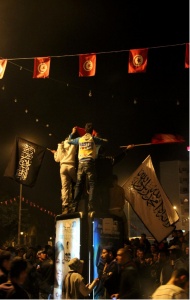 Les jeunes trouble-fêtes, qui proviendraient des quartiers populaires de Tunis et auraient été rémunérés pour troubler le sit-in, sortent les drapeaux salafistes. Suite à leurs provocations, la manifestation dégénère et entraîne l’intervention au gaz lacrymogène des forces de police, qui séparent les 2 camps en présence.