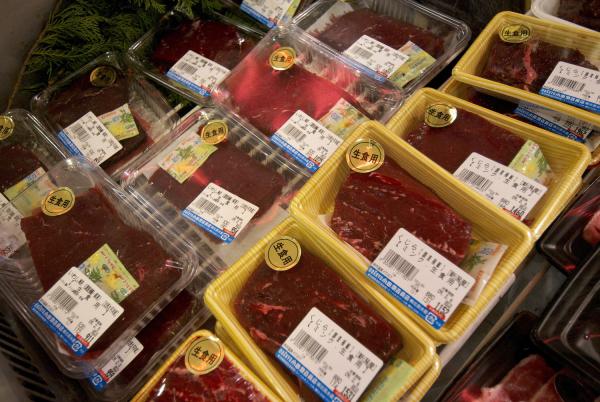 Viande de baleine sur l'étal d'un magasin japonais. Seuls 5 % des habitants de l'archipel consomment régulièrement ce plat. DR