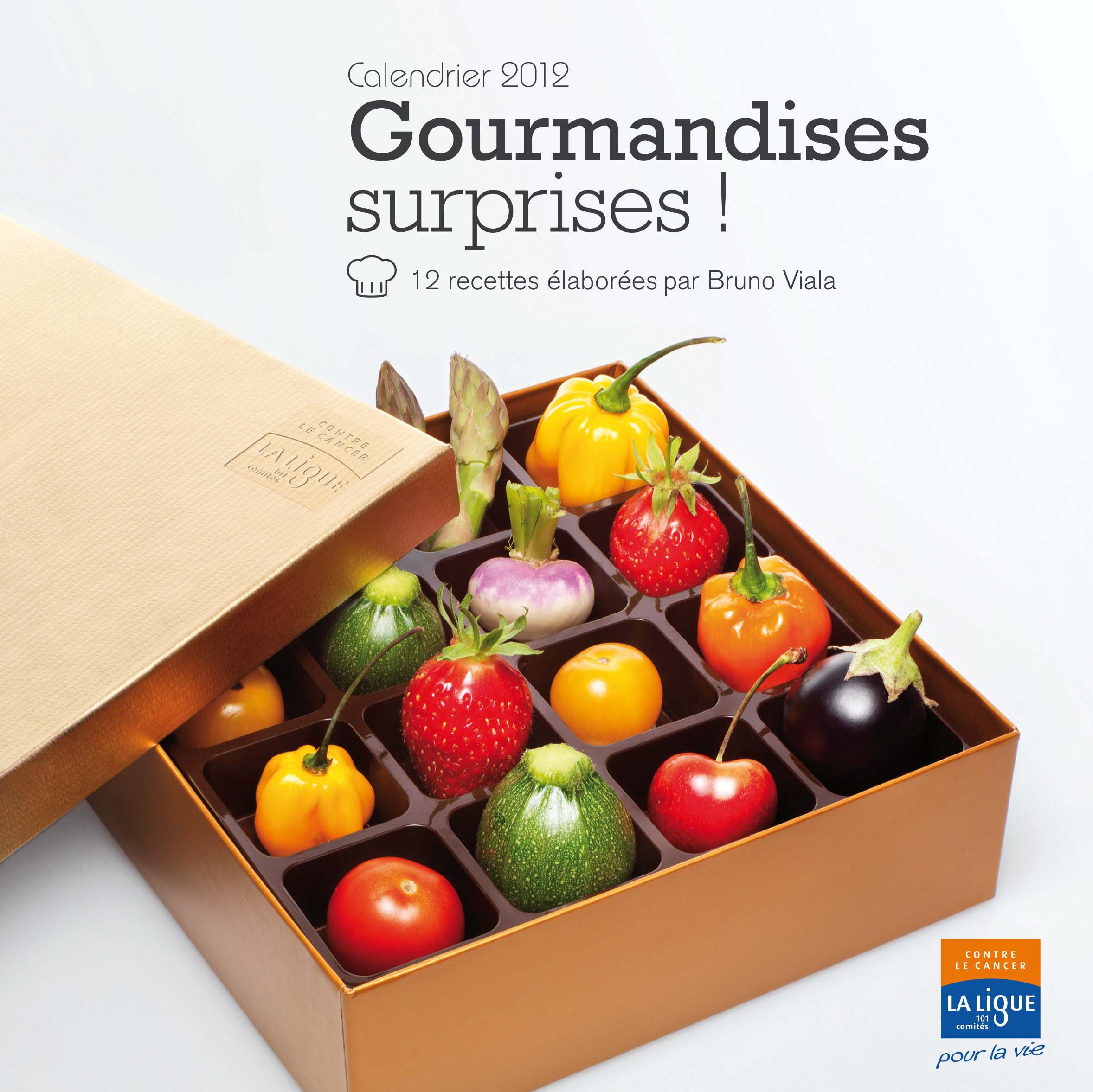 Calendrier 2012 : Gourmandises surprises !12 recettes élaborées par le chef Bruno Viala5 €, en vente sur www.ligue-cancer.net0810 111 101 (prix d’un appel local)