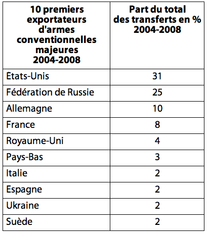 10 premiers exportateurs d’armes conventionnelles majeures en 2004-2008