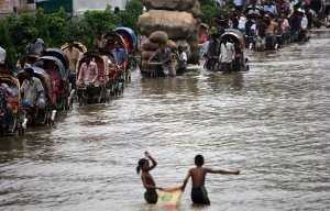 Au Bangladesh, les signes ne trompent pas, la fréquence des cyclones s’est accélérée depuis 30 ans. Autrefois, un cyclone tous les 20 ans, aujourd’hui, ils surviennent tous les deux ou trois ans. Le dernier en date, Nargis, a tué 50 000 personnes. Les inondations augmentent en nombre et en intensité. Lorsque l’eau se retire, certaines rivières suivent un nouveau cours, obligeant des populations entières à fuir leur région.
