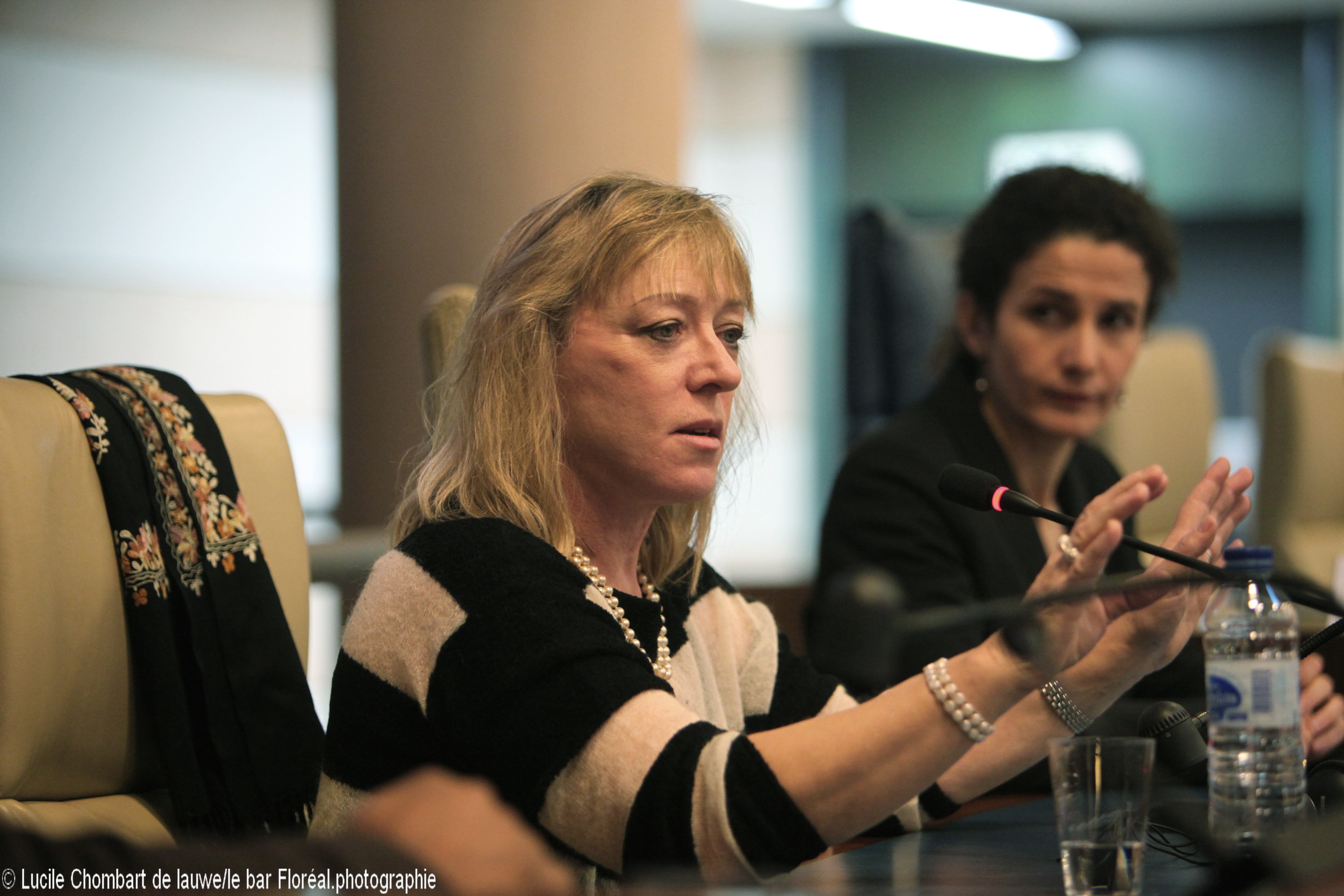 Lauréate du Prix Nobel de la Paix de 1997, conjointement avec l’ICBL dont elle est ambassadrice, Jody Williams insiste sur l’obligation des Etats à respecter les normes internationales en vigueur. « Le combat pour un désarmement humanitaire ne peut se faire que sur la base du partenariat » précise alors Sylvie Brigot-Vilain, Directrice Générale de l’ICBL – Cluster Munition Coalition. L’adoption par la majorité des Etats du Traité d’interdiction sur les mines de 1997 et de la Convention de 2008 s’est d’ailleurs faite sur la base d’un partenariat – notamment au niveau financier – entre gouvernements, ONG et Organisations Internationales. Mais « c’est un contrat qui peut être rompu à tout moment » rappelle Sylvie Brigot-Vilain.