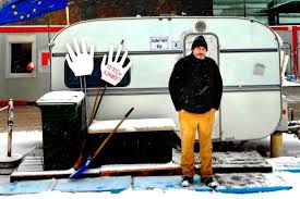 Si Viktor Orban bénéficie au Parlement d’une majorité des deux tiers, qui lui permet de réviser la Constitution à son gré, et si la population semble assez largement le suivre, des Hongrois résistent pourtant courageusement, à cette dérive autoritaire. Balazs Nagy Navarro, fait partie de ces Hongrois qui ont décidé d’entrer « en résistance » contre le gouvernement de Viktor Orban. Journaliste au sein de la télévision publique MTVA, il a initié une grève de la faim pendant une semaine en décembre 2011 et a, depuis, installé un campement de protestation pacifique devant le siège de la télévision. Membre du Mouvement Mains Nettes – en référence à l’opération Mais Propres menée en Italie dans les années 1990 pour éradiquer la corruption de la classe politique et médiatique – il dénonce les conflits d’intérêt et la censure qui opèrent au plus haut niveau hiérarchique. Licencié peu de temps après avoir commencé son action, M. Nagy Navarro mène une guerre sur le plan juridique et psychologique avec le pouvoir. Installé initialement sur le parvis du siège de la télévision, son campement a été attaqué à plusieurs reprises et délogé en novembre dernier. Ces intimidations ne l’empêchent pas de poursuivre son combat : Il a installé un panneau avec une liste de responsables de l’audiovisuel public qui sont coupables d’atteinte à la liberté d’information. Chaque fois que l’un d’entre eux démissionne, son nom est barré. Tous ont la particularité d’être proches du FIDESZ – parti de Viktor Orban – ou de l’extrême droite hongroise.