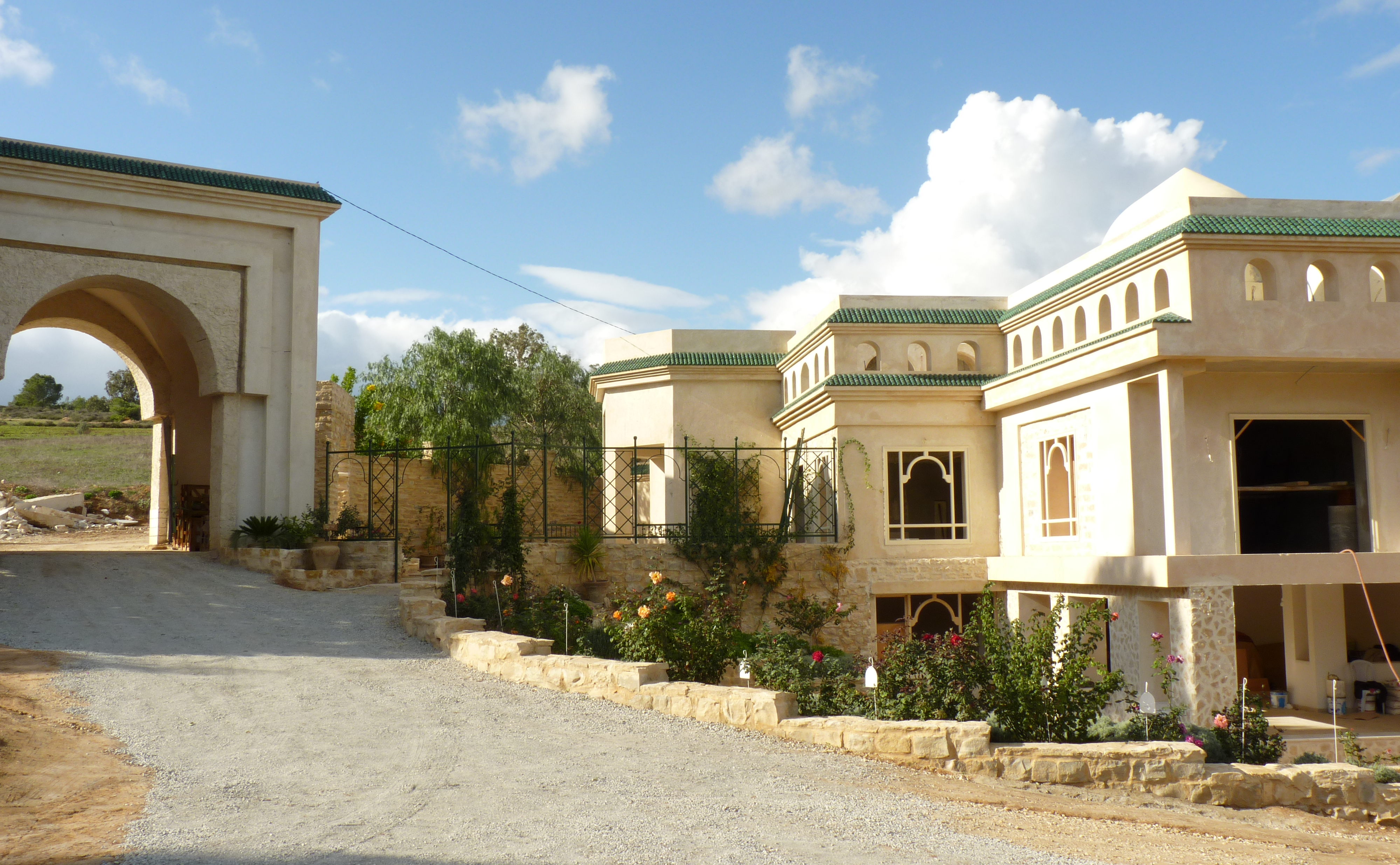 s’articule autour de la formation et de l’expérimentation des techniques de construction alternatives en partenariat avec de nombreux acteurs de l’éco-‐contruction dans le bassin méditerranéen : le centre CRAterre spécialisé dans les construction en terre, la voute nubienne, association de réhabilitation des techniques traditionnelles en terre, le Centre Technique des Matériaux de Construction, de la Céramique et du Verre (CTMCCV). Le but est de promouvoir en Tunisie des techniques comme l’adobe, le pisé, la brique de terre compressée (BTC), la paille, qui sont peu coûteux voire gratuits et non polluants… Plusieurs prototypes ont déjà été construits à Sidi Amor : une maison en paille porteuse avec un toit végétalisé, un bâtiment basse consommation et une maison en BTC (la terre du site est compressée à l’aide d’une machine construite par Thierry). Chaque été est organisé un chantier-‐école d’éco-‐construction à destination des étudiants en architecture, apprentis et ingénieurs. Ces initiatives ont mis éveillé les curiosités et les intérêts du gouvernement et des associations. Plusieurs ministres tunisiens, les ambassadeurs de Corée, de Turquie et des Etas Unis, des architectes internationaux et de nombreux acteurs de la société civile ont ainsi visité le site ces deux dernières années en vue de monter des partenariats.