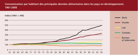 La consommation de protéines animales (œufs, viande, lait) explose dans les pays émergents (source FAO)
