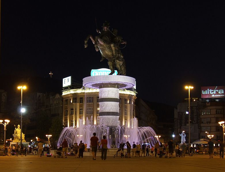 Colonnes antiques, arc de triomphe, statues gigantesques, à travers un plan qui ne compte pas moins de 80 projets architecturaux, Skopje ressuscite les figures de son panthéon national et affiche fièrement son glorieux passé. Point d’orgue de ce chantier pharaonique, l’érection d’une statue de 22 mètres qui met « en scelle » Alexandre le Grand. Le monument dont on dit qu’il est le plus haut des Balkans, est là pour rappeler au visiteur la nationalité du roi mythique…