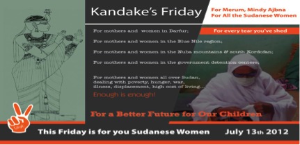 Le combat continue et rassemble toujours davantage de personnes. Au cours des manifestations contre le régime de 2012, un groupe de courageuses Soudanaises, surnommées Queen Kandake (Femmes fortes), se sont battues pour la cause des femmes dans le pays, notamment contre les arrestations policières qui vont à l’encontre des droits de la femme. Le vendredi 13 juillet 2012, un jour renommé Kandake’s Friday en l’honneur de leur courage, elles étaient à la tête de la révolte soudanaise.