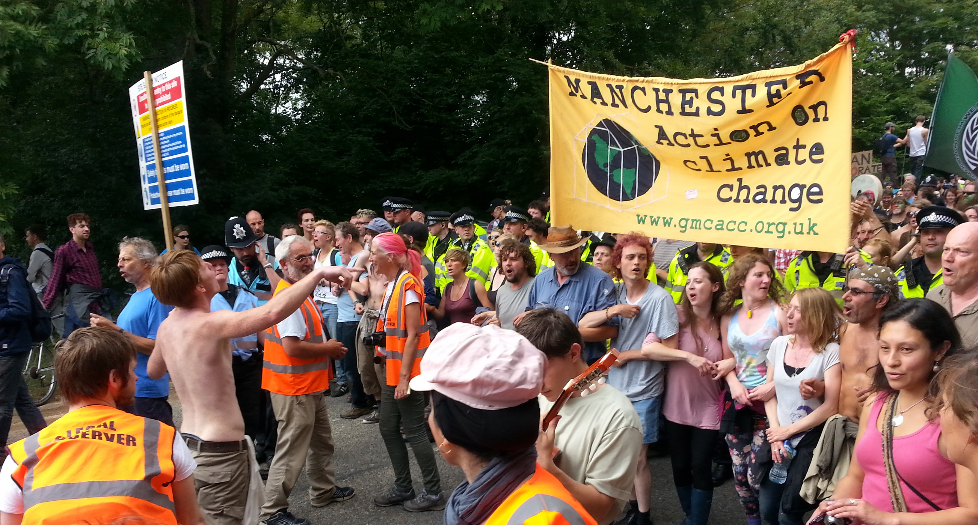 Ce jour-là, des centaines de manifestants se sont occupés de bloquer la route entre Balcombe et Cuckfield ; au même moment, six activistes ont occupé l’agence de relations publiques de la compagnie d’énergie Cuadrilla à Londres, et d’autres le quartier général de Cuadrilla, à Lichfield. L’un des activistes nous a raconté avoir été brutalisé par la police lors de la manifestation à Balcombe. Au total, vingt-neuf personnes y ont été arrêtées, pour troubles à l’ordre public et obstruction d’une route. Parmi elles, la députée Vert Caroline Lucas, qui a considéré que participer à la manifestation était la seule option restante pour inciter le gouvernement à prendre en compte l’étendue des problèmes posés par le gaz de schiste.