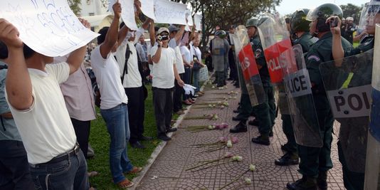 « Dans une situation post-électorale toujours sensible […], il est recommandé à nos compatriotes d’éviter tout rassemblement publique et de s’informer de l’évolution de la situation » affichait sobrement ces derniers jours le site de l’ambassade française au Cambodge. Non que le Cambodian National Rescue Party (CNRP), le parti d’opposition, organisateur de la manifestation massive annoncée samedi 7 septembre, se soit fait particulièrement menaçant ou belliqueux, bien au contraire. Dans la semaine qui précédait la manifestation, la publication d’un code d’éthique énumérant les expressions verbales proscrites, afin d’éviter tout dérapage. Jeudi et vendredi dernier, des « entraînements à manifester » donnant à voir, à Phnom Penh, des acteurs jouant les policiers comme les protestataires, et enseignant à une foule attentive et silencieuse l’art d’un défilé calme et sans accrocs. Pas d’armes, pas de cris, pas d’insultes, mais du silence et des lotus, des bougies et de l’encens. « Nous prierons et resterons courtois », soulignait encore jeudi dernier l’opposant et président du CNRP Sam Rainsy dans le Cambodia Daily.