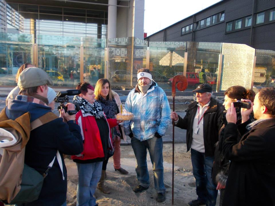 Balazs Nagy Navarro, devant le siège de la télévision publique hongroise en décembre 2013