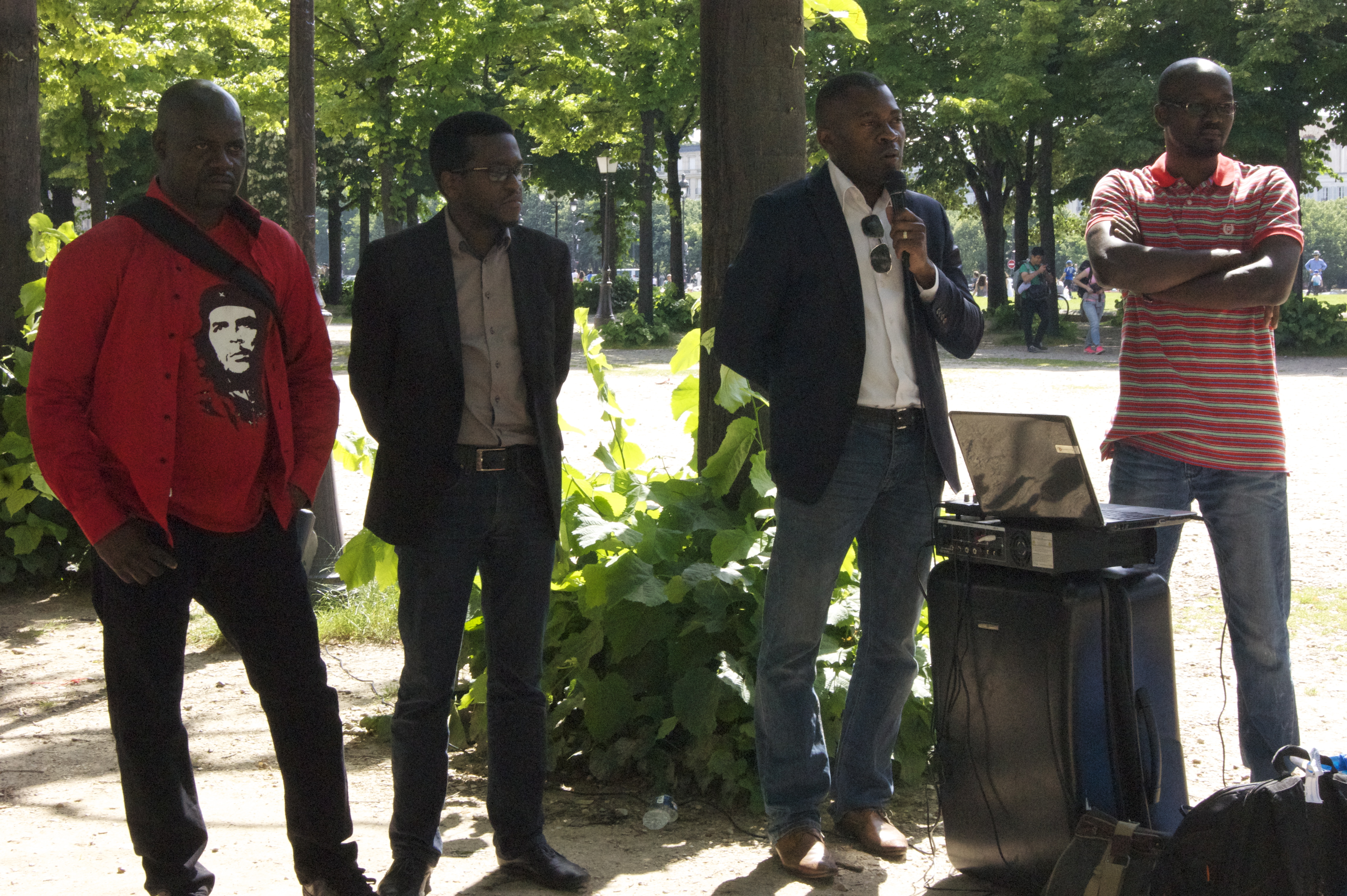 Une vingtaine de personnes ont manifesté leur déception et leur colère durant tout l’après-midi, non loin du Quai d’Orsay. Wilfried Maurice Sébiro, directeur de la publication de Centrafrique Libre et très engagé dans la lutte pour l’apaisement du pays, explique : « Nous sommes ici pour manifester face au regain de violence en République Centrafricaine et face aux tergiversations de la communauté internationale. Force est de constater que depuis que la MISCA et la force Sangaris sont sur place, les anti-balaka comme les milices séléka n’ont pas été désarmées. L’insécurité perdure. On appelle donc à un désarmement total de toutes milices présentes en RCA. L’intervention des forces militaires multinationales était une bonne chose pour empêcher le chaos, mais on constate que parmi les forces qui opèrent sur le territoire centrafricain, certaines sont partiales. C’est notamment le cas de la force burundaise qui a assisté à l’attaque de Notre-Dame de Fatima, laquelle a été perpétrée grâce à des véhicules motorisés alors que toute circulation devait être stoppée dans la capitale. Il y a un certain laxisme, et je déplore surtout l’inaction du gouvernement qui ne fait pas montre de courage. Si il faisait son travail dans les règles de l’art, nous ne serions sans doute pas face à cette situation. »
