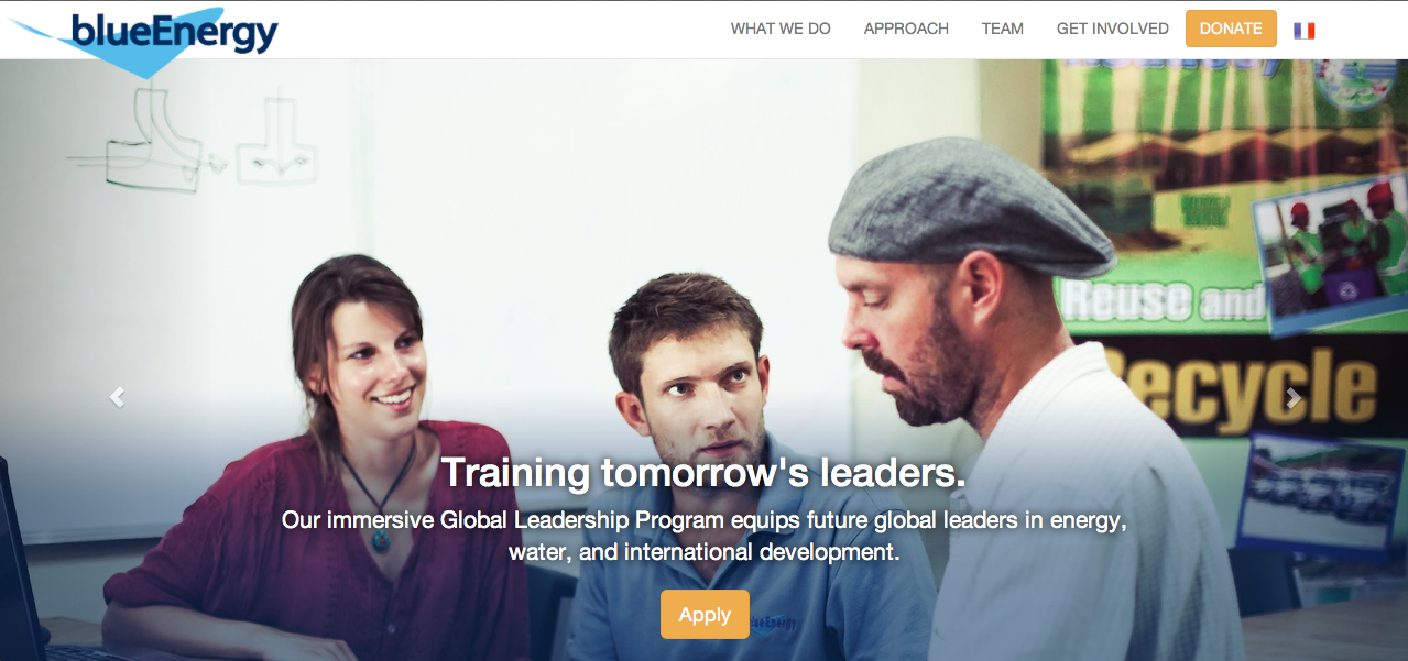 L’association franco-américaine BlueEnergy, fondée en 2003 par Mathias Craig, a pour vocation d’aider au développement énergétique de populations isolées dans les pays pauvres. Mais elle ne se contente pas d’apporter une aide d’urgence et privilégie une approche durable : elle fonde son action sur la nécessité d’apprendre aux peuples à se développer par eux-mêmes, notamment grâce au transfert de compétences.