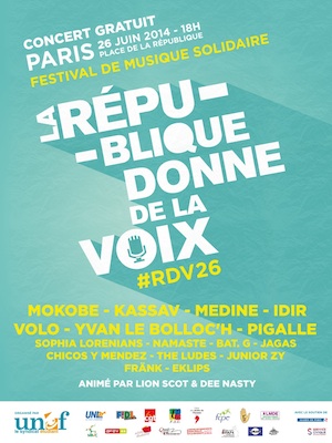 Le syndicat étudiant l’UNEF, vous propose un festival musical contre le racisme intitulé « La République donne de la voix ». Avec l’aide de 20 associations et syndicats ils ont réuni une vingtaine d’artistes au nom de cette cause. Tous vous donnent rendez-vous le jeudi 26 juin à 18h afin de «continuer le combat contre les idées d’extrême-droite et rassembler toutes celles et ceux qui veulent porter les valeurs d’égalité et de solidarité » (Communiqué de presse de l’UNEF). Joignez-vous à l’UNEF, Mokobe, Kassav, Idir, Volon, Yvan Le Bolloc’h, Medine, Pigalle, Sophia Lorenians, Namaste, Jagas, Bat.G, … lors de ce festival contre le racisme.