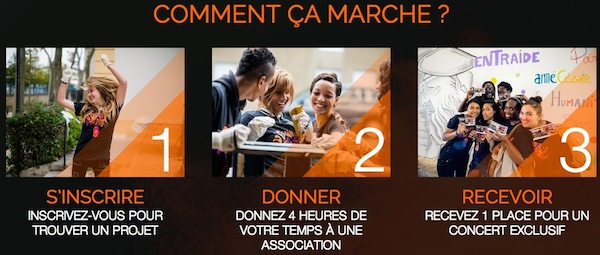 Cet événement, partenariat entre Orange et RockCorps, a pour but de sensibiliser la jeunesse et les encourager à s’impliquer dans des associations. Ainsi, après avoir donné 4h de leur temps à l’une des associations partenaires du programme ils ont reçu leur ticket pour ce concert réunissant cette année Wiz Khalifa, Indila, Azealia Banks et Cut Killer.