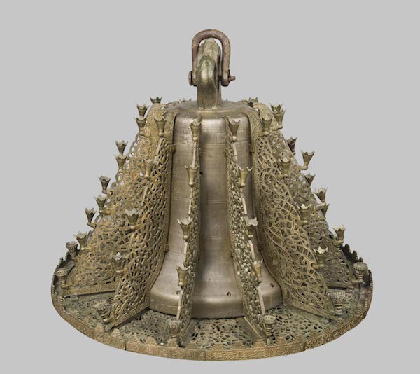 Yannick Lintz : Même s’il est difficile de choisir parmi la richesse des œuvres, peut être que le lustre cloche est particulièrement symbolique. Cette cloche chrétienne avec des inscriptions latines prise dans un butin de guerre par les Mérinides a été transformée en lustre dans la mosquée de al-Qarawiyyin à Fès.