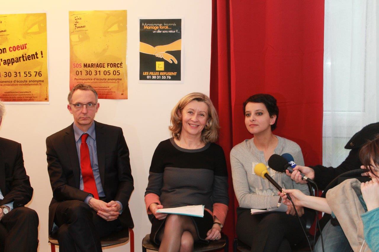 Najat Vallaud-Belkacem et Hélène Conway-Mouret annonçant le projet de loi pour lutter contre les mariages forcés – 11 mars 2013