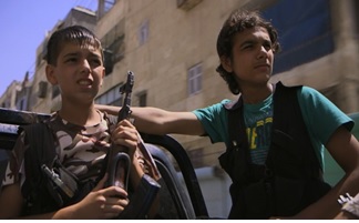 Moatez, 13 ans, et son frère Hussein, 16 ans combattent le régime de Bachar al-Assad dans le dernier bastion rebelle d’Alep, la capitale. Hussein combat avec son père dans l’Armée syrienne libre et Moatez s’apprête à le rejoindre. Pour ces enfants, devenir soldat et mourir martyr pour Allah est le seul destin concevable. Face à l’armée professionnelle du régime syrien, ils se rendent au front chaque matin dans la ville déserte, assiégée par les forces d’Assad. Des 3 millions d’habitants recensés avant le conflit, il n’en reste que 250.000 trois ans plus tard. Beaucoup ont fui la région, mais rien qu’à Alep 32.000 personnes auraient été tuées, dont 10.000 enfants.