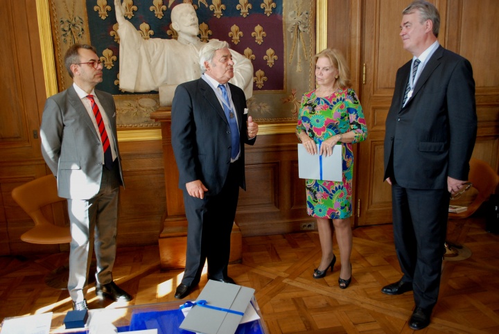 En décorant M. Delevoye, le président de l’UIA a souligné combien l’actuel président de la Troisième Assemblée de la République française s’était rapproché des citoyens et s’était mis toujours davantage, au fil de ses mandats et fonctions successives (député, sénateur, maire de Bapaume, ministre de l’Aménagement du territoire sous la présidence de Jacques Chirac, président de l’Association des Maires de France et médiateur de la République de 2004 à 2011, président du CESE), au service du « défi de construire l‘Etat de droit et de libertés ».
