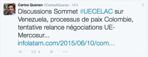 L’UE a aussi affirmé apporter son soutien au processus de paix en Colombie, dont les négociations se déroulent à la Havane, sous la houlette de représentants cubains et norvégiens, les deux pays garants de ce processus.