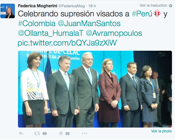 L’UE a signé un accord supprimant les visas pour les courts séjours de ressortissants péruviens et colombiens dans l’espace Schengen, en marge du Sommet UE/CELAC