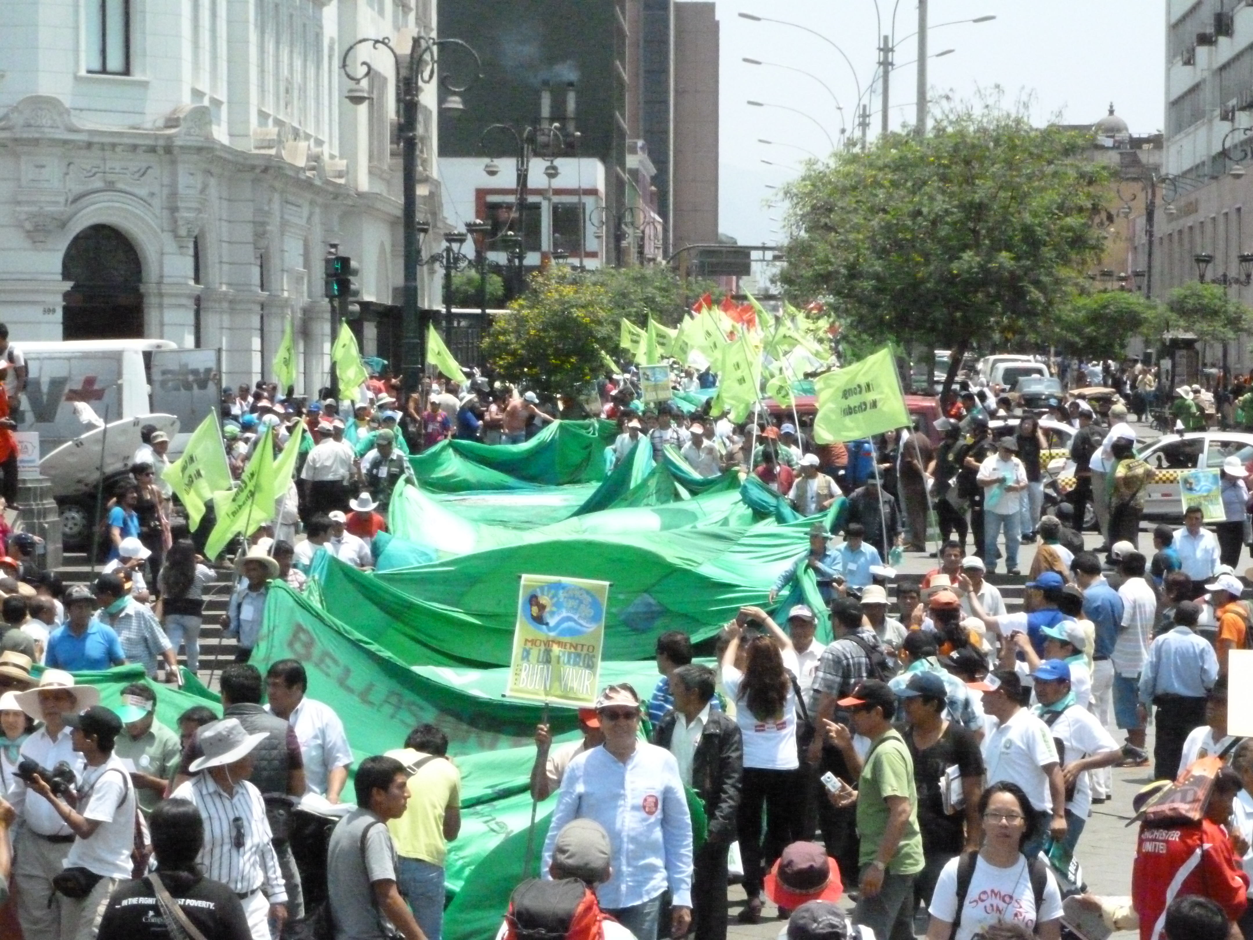 Récemment, le cas de Maxima Acuña de Chaupe, paysanne andine, résidant à Cajamarca et refusant de vendre sa terre et d’être délogée par la multinationale américaine, a mis en exergue l’antagonisme entre intérêts économiques, défendus par les compagnies d’extraction de ressources naturelles, souvent soutenues par le gouvernement péruvien, et les nécessités vitales des communautés autochtones vivant dans les territoires où sont implantés ces grand projets miniers. Les populations autochtones font notamment valoir leur accès à une eau propre et de qualité, pour la consommation et l’usage quotidiens.