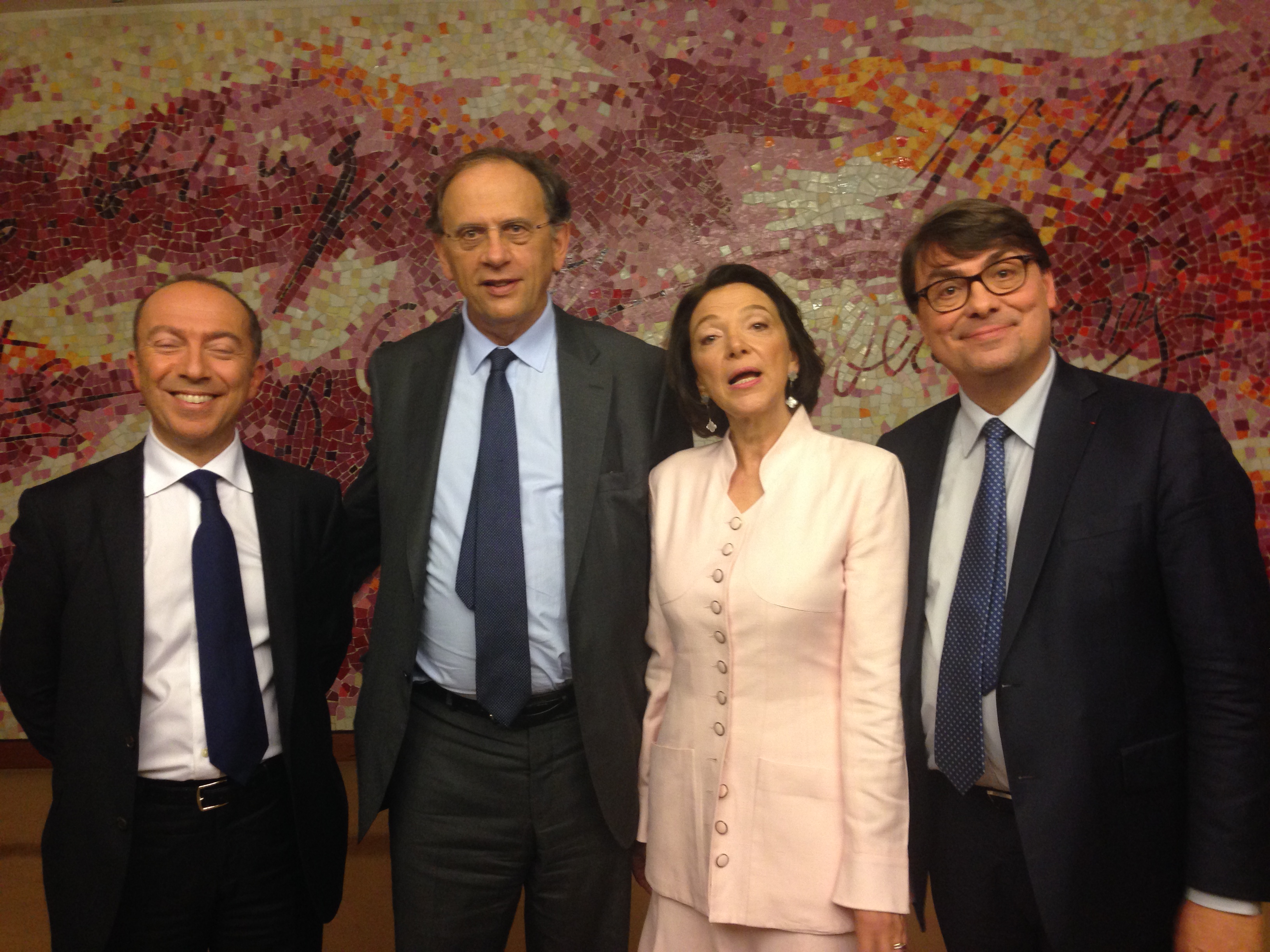 Les candidats à l’élection du Bâtonnier et du Vice-Bâtonnier de Paris (de gauche à droite) : David Gordon-Krief, Hubert Flichy, Dominique Attias, Frédéric Sicard
