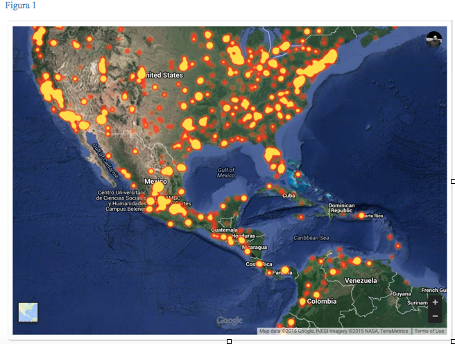Si se acepta por ejemplo que las plataformas virtuales para la socialización, o redes sociales, son también cajas de resonancia de las temáticas que conforman el interés público, e instancias productoras de sentido, la cosa se pone más grave. Un ejercicio básico de conteo indica que en un periodo de 81 horas (entre el 12 y el 15 de julio de 2015) se han emitido alrededor de 56 mil tuits con el hashtag #ElChapo. En poco más de tres días, el tema ha alcanzado a una audiencia de más de 120 millones de personas. Esto equivale a decir que cada hora hay en las redes cerca de 686 tuitazos acerca del capo sinaloense. La mayor parte de esta conversación candente tiene lugar en México y en Estados Unidos, tal como se aprecia en la figura 1.