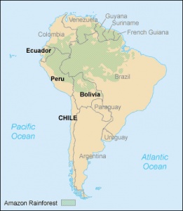 A quelques mois de la grande conférence sur le climat COP21 en décembre, à Paris, deux représentants du peuple Guarani-Kaiowá, dans l’Etat du Mato Grosso du Sud, au Brésil, étaient de passage dans la capitale française du 20 au 26 juillet pour alerter des effets de la déforestation de l’Amazonie, pratiquée par des multinationales de l’industrie des agro-carburants qui s’approprient les terres indiennes, menaçant directement la survie de ces populations. L’Amazonie s’étend sur le Brésil, la Bolivie, le Pérou, l’Equateur, la Colombie, le Venezuela, le Guyana, le Suriname et la Guyane française (voir carte ci-dessous).