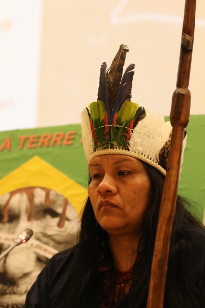 « A l’heure actuelle, Dilma Rousseff a sur sa table 22 dossiers de terres indiennes déjà homologuées mais il manque sa signature. Et en ne signant pas, elle tue ce peuple à petit feu », déclare une représentante de la Fondation France Libertés.