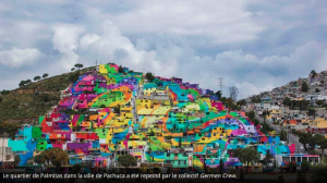 Dans la ville de Pachuca, à une centaine de kilomètres de Mexico, un quartier a été entièrement repeint aux couleurs de l’arc-en-ciel par le collectif de street-artistes : Germen Crew, aidé par les habitants des maisons.