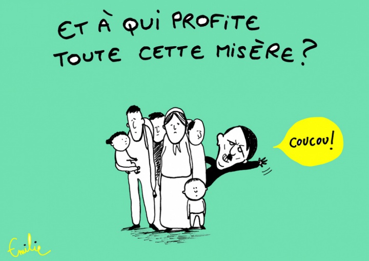 Émilie est dessinatrice de presse depuis quelques années. Elle débute au Huffington Post et travaille désormais régulièrement pour Opinion Internationale. On aime ses personnages, ses couleurs vives et évidemment son intérêt pour l'actualité internationale. Une dessinatrice à suivre !