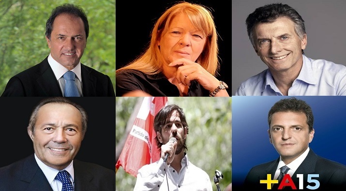 De los 13 pre candidatos a las elecciones primarias del 9 de agosto, sólo quedaron seis candidatos que salieron mayoritarios para representar su partido político en las presidenciales del 25 de octubre : Daniel Scioli (Partido Justicialista), Mauricio Macri (Unión Pro), Sergio Massa (Frente Renovador), Nicolás del Caño (Partido de los Trabajadores Socialistas), Margarita Stolbizer (Generación para un Encuentro Nacional), Adolfo Rodriguez Saá (Compromiso Federal).