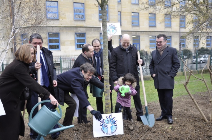 Vendredi 21 mars, Jérôme Coumet, Maire du 13ème arrondissement de Paris, Denis Baupin, vice-président de l’Assemblée Nationale française, Dali Chammari, citoyen tunisien et et co-initiateur de « Pour la Tunisie qu’on aime » ont planté le premier arbre de la Fraternité, un charme, dans le Parc de Choisy (Paris 13ème).