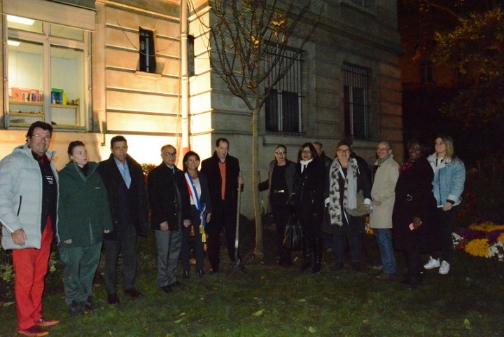 Jeudi 15 octobre, les élèves de la filière menuiserie du lycée Frédéric Bartholdi de Saint-Denis (93) ont planté un Arbre de la Fraternité©, en présence de Romain Nadal, porte-parole et directeur de la communication du quai d’Orsay, de Miguel Loinaz, Président de l’Union Internationale des Avocats, de Sergio Bottana, Président du Congrès des Départements, Grand Intendant du département de Cerro Largo d’Uruguay, Michel Peisse, président de l’OMECA (Organisation Mondiale des Experts – Arbitres), Raynald Rimbault, vice-président de « Nos quartiers ont du talent ».