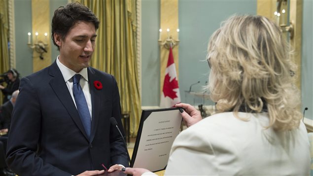 Justin Trudeau prête serment comme 23e premier ministre du Canada. Crédit photo : PC/Sean Kilpatrick