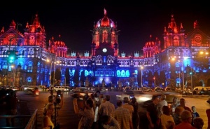 Chhatrapati Shivaji Terminus à Bombay, aux couleurs français. – Crédit : Rizwan Mithawala – Page Facebook de l’Institut Français[/caption]