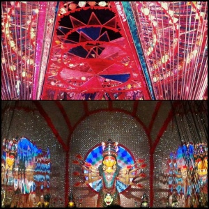 Aujourd’hui, nous sommes le premier jour de la fête de Durga Puja. Célébrant la victoire du Bien sur le Mal, grâce à la force déployée par la déesse Durga – Puja signifie prière -, c’est la plus grande fête du Bengale Occidental, son importance s’étend dans une grande partie de l’Asie du Sud et rassemble des millions de personnes. Durant cinq jours et calculée en fonction du calendrier lunaire, elle est l’origine à Calcutta de la construction de près de deux mille temples éphémères.