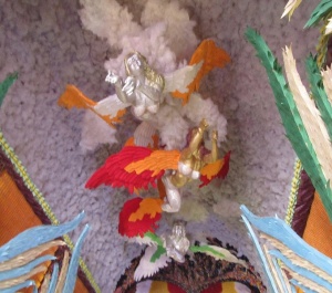 Fait socio-culturel majeur de l’Inde, temps fort pour les familles, Durga Puja l’est aussi pour les différentes communautés professionnelles, qui représentent leurs fonctions et capacités dans les pandals. Evènement significatif en termes d’économie et de tourisme, fête qui place au centre la féminité, Durga vient développer les créations artistiques, emmène plus loin l’imagination – et nous rappelle que l’hindouisme ne peut être réduit à la marginalité de ses affrontements communautaires.