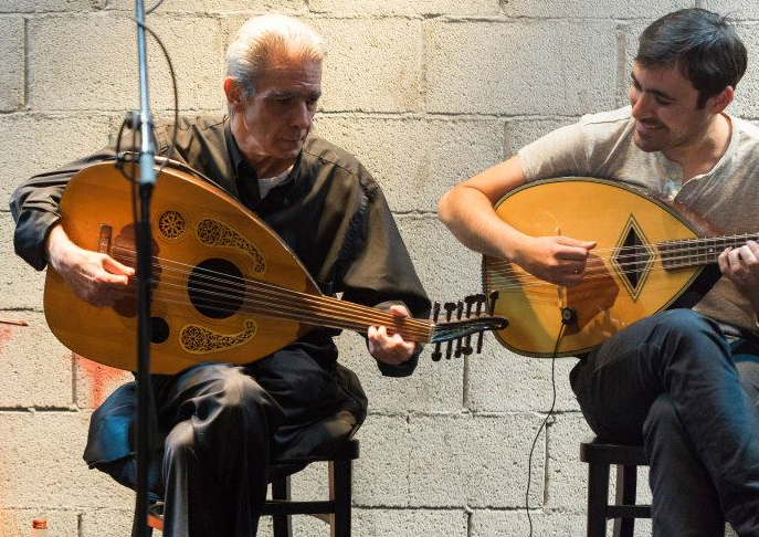 Gilad Vaknin en concert, à droite avec son maître Nino Bitton. Crédit photos : Ailon Glitz