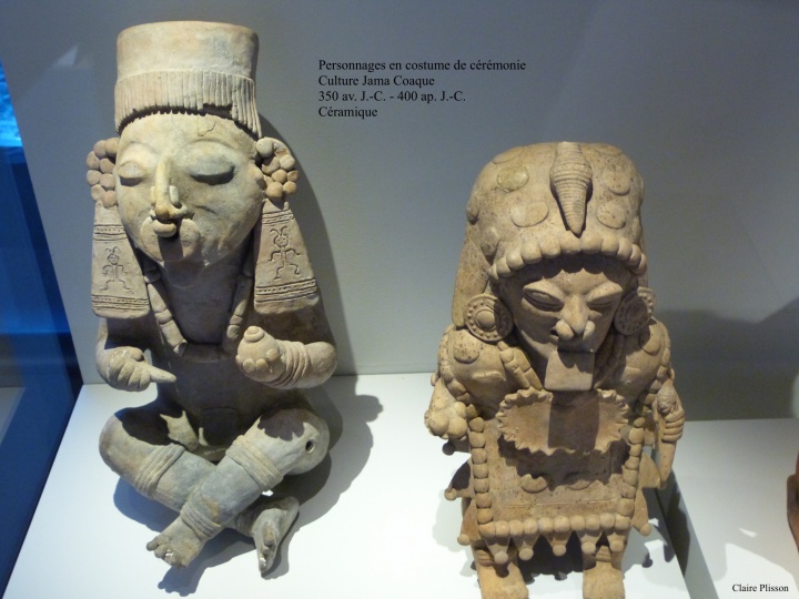 Il y a des objets de quatre cultures précolombiennes équatoriennes différentes : celle de la Chorrera, celle de Bahía, celle de Jama Coaque et celle de La Tolita, qui s’inscrivent dans la période allant de 500 avant Jésus-Christ à 500 après.